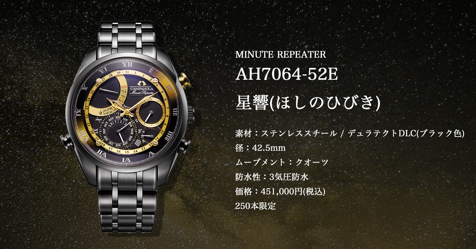 ブランド誕生25周年を記念した「星響(ほしのひびき)」をはじめ、グランドコンプリケーションやミニッツリピーターを搭載した、