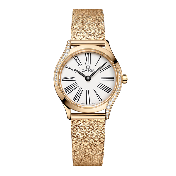 ミニ トレゾアは、オメガの最も現代的なレディス コレクションをより洗練させたモデルです。コンパクトなサイズとダイナミックなスタイルは、手首の上で目を引きます。